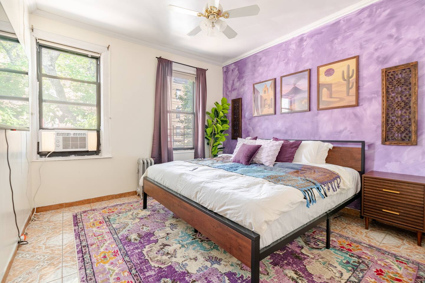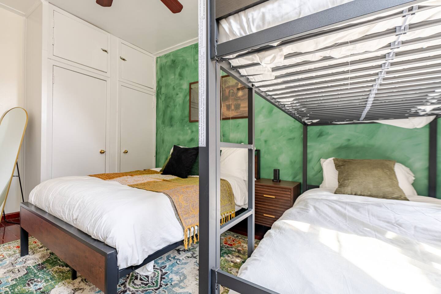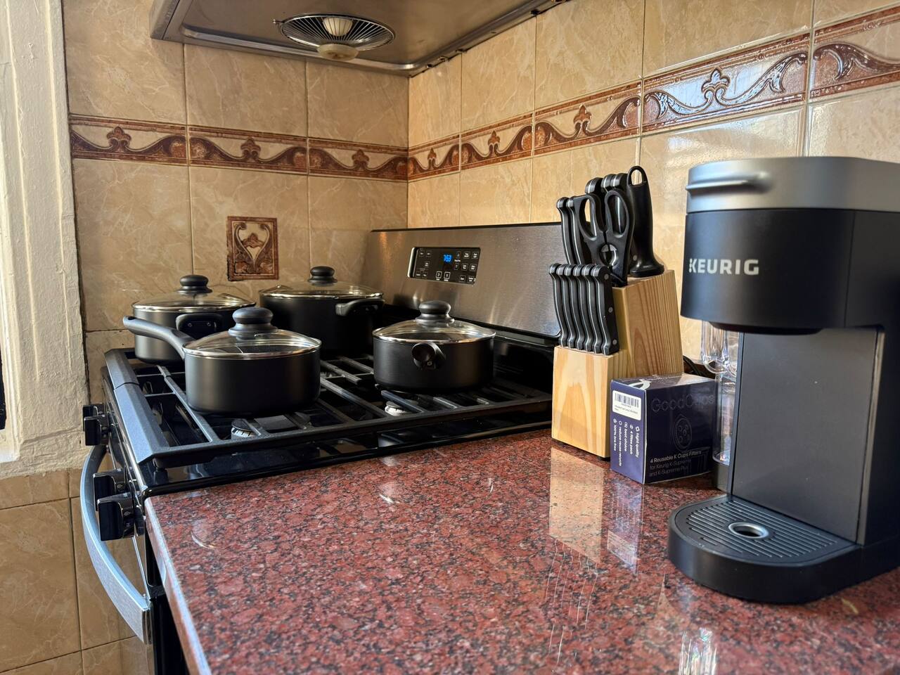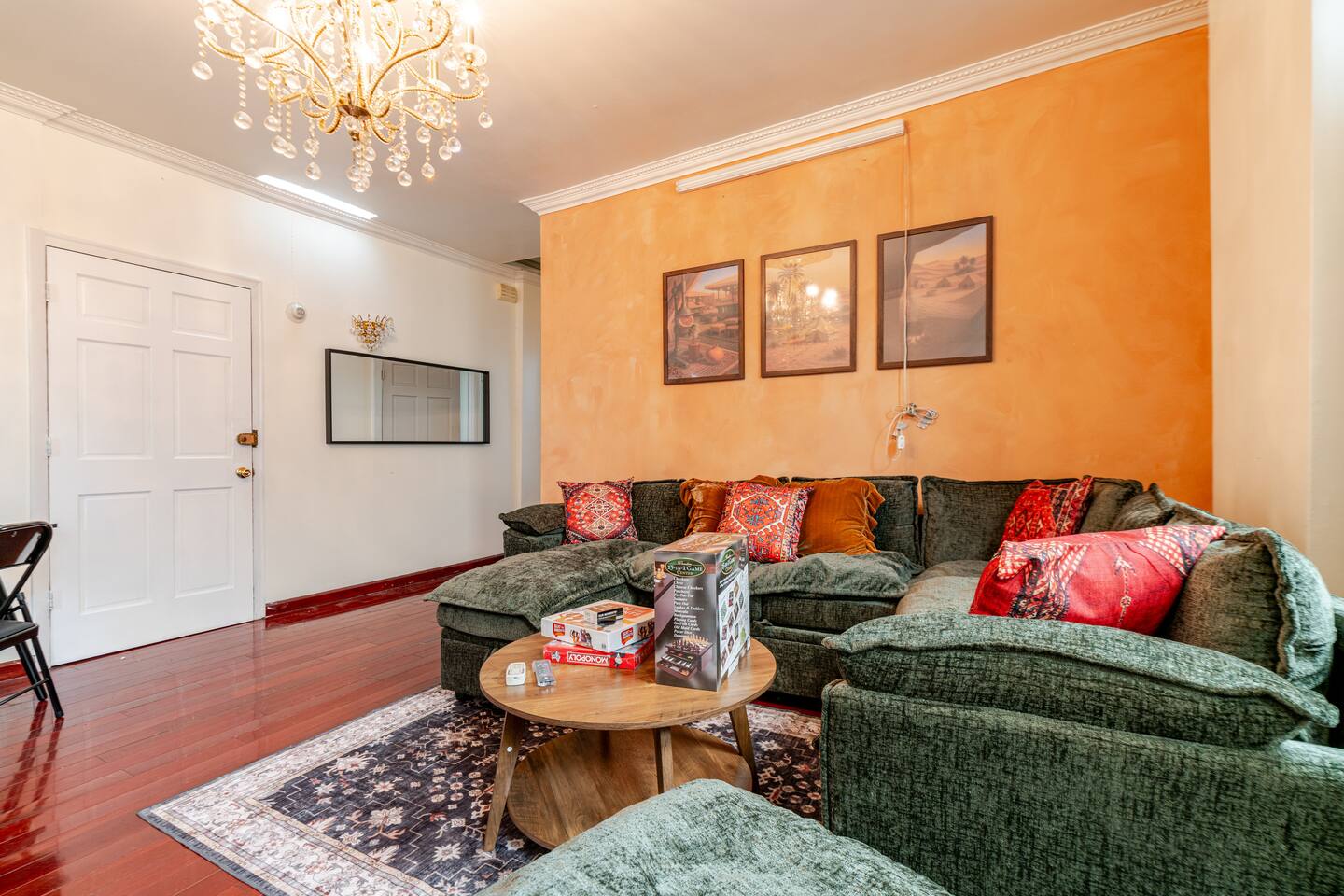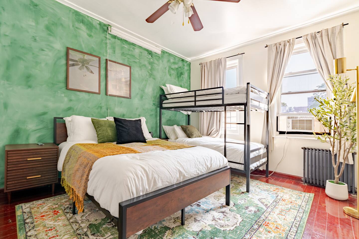 Step inside and feel right at home! The first thing youโll see is our bright, spacious living room โ anchored by the kind of couch you just sink into and never want to leave. Itโs big enough for the whole crew (seats 8!) and even transforms into a full-size bed if you need extra sleeping space. Perfect for movie marathons, late-night chats, or mid-afternoon naps. Next up, the master bedroom โ a cozy retreat with a king-size bed youโll melt into after a long day. Like the other master bedroom here, itโs got its own TV for your binge-watching pleasure, plus a private ensuite bathroom so you can get ready in peace. Across the hall, thereโs a charming bedroom with a full-size bed, a desk for remote work (or late-night journaling), a mirror for getting ready, and plenty of closet space to stash your things. At the far end of the apartment, youโll find our second master bedroom โ a group favorite! Itโs got a full-size bed, a bunk bed (yes, bunk bed fun for the kids or the young at heart), and space to relax, chat, and watch TV together. Like the others, it comes with a mirror and a roomy closet. Hungry? Caffeine craving? Our kitchenโs got you covered with a Keurig, microwave, fridge, pots, pans, plates, cups โ the works. Whether youโre whipping up a midnight snack or a full dinner, youโll find what you need. The neighborhood? The perfect balance โ peaceful mornings, vibrant days. Just 1.5 blocks away, youโll hit the water, and a few steps further is the botanical garden (bring a picnic, wander the paths, snap a few photos). Cafes, grocery stores, and laundromats are all close by โ so you can live like a local. Getting into the city is a breeze โ walk 10 minutes to the train and youโll be in Times Square in about 15โ20 minutes. Or Uber it in roughly the same time. But donโt skip the local scene! Astoria and Long Island City are bursting with amazing restaurants, cozy cafes, dessert shops, lounges, and bars. You could spend one vacation right here and another across the river in Manhattan. With two bathrooms, three bedrooms, and a huge living space to gather in, this is more than just a place to sleep โ itโs a space to connect, laugh, and make memories. Whether youโre here for the energy of NYC or the charm of Astoria (or both), youโve found the perfect spot.
